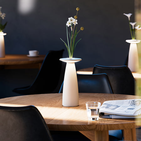Elegant & einzigartig: Die FIORINA verbindet modernes Lichtdesign mit einem integrierten Blumeneinsatz – für eine stilvolle Kombination aus Beleuchtung und Dekoration. Ihr sanftes, blendfreies Licht setzt Tisch und Blumen harmonisch in Szene und sorgt für eine warme, gemütliche Atmosphäre – ideal für Wohnraum, Terrasse oder Balkon.