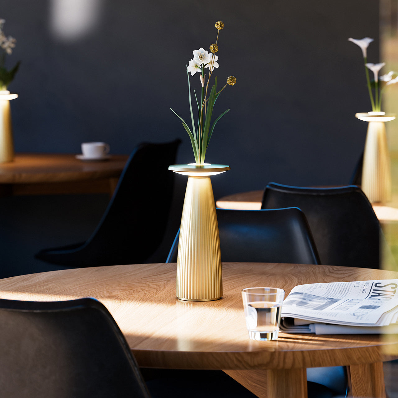 Akku-Tischleuchte – FIORINA: stilvolles Lichtdesign mit floraler Note – perfekt für drinnen und draußen.