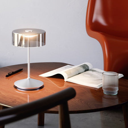 LED Akku-Tischleuchte – VETRINA: handwerkliche Eleganz trifft moderne LED-Technik – für stimmungsvolles Lichtdesign innen und außen.