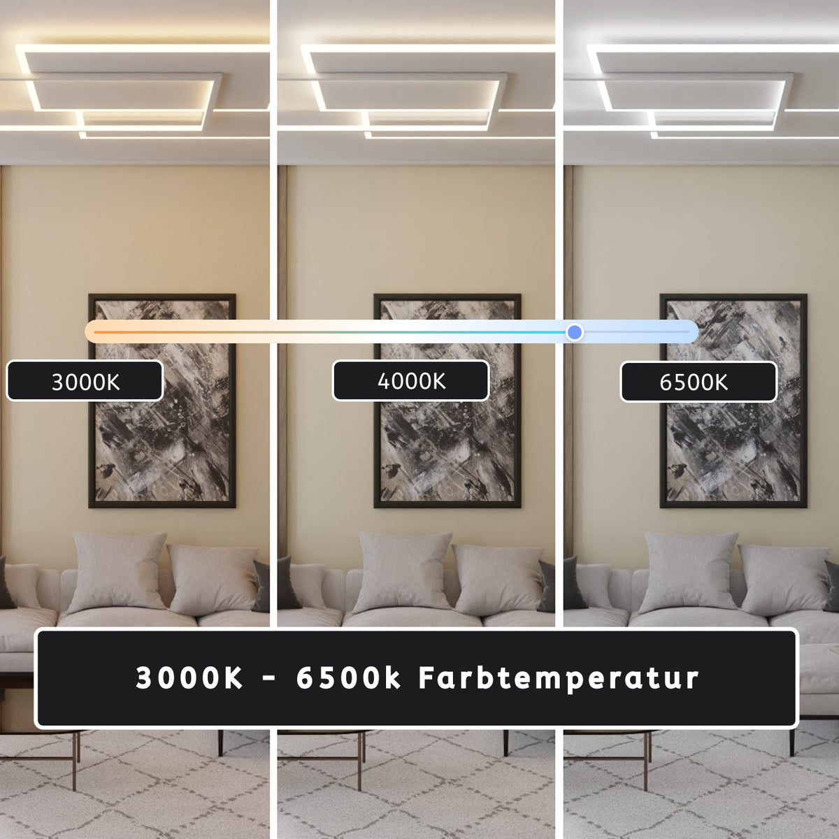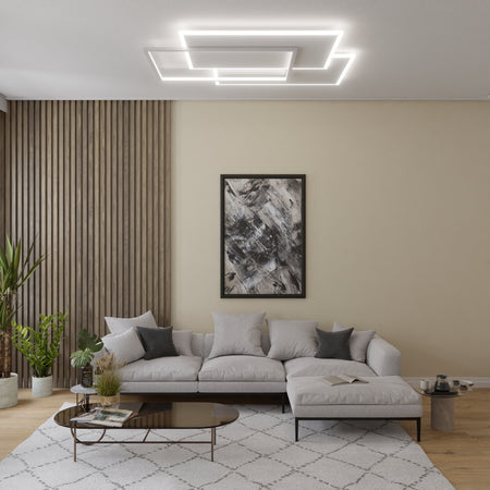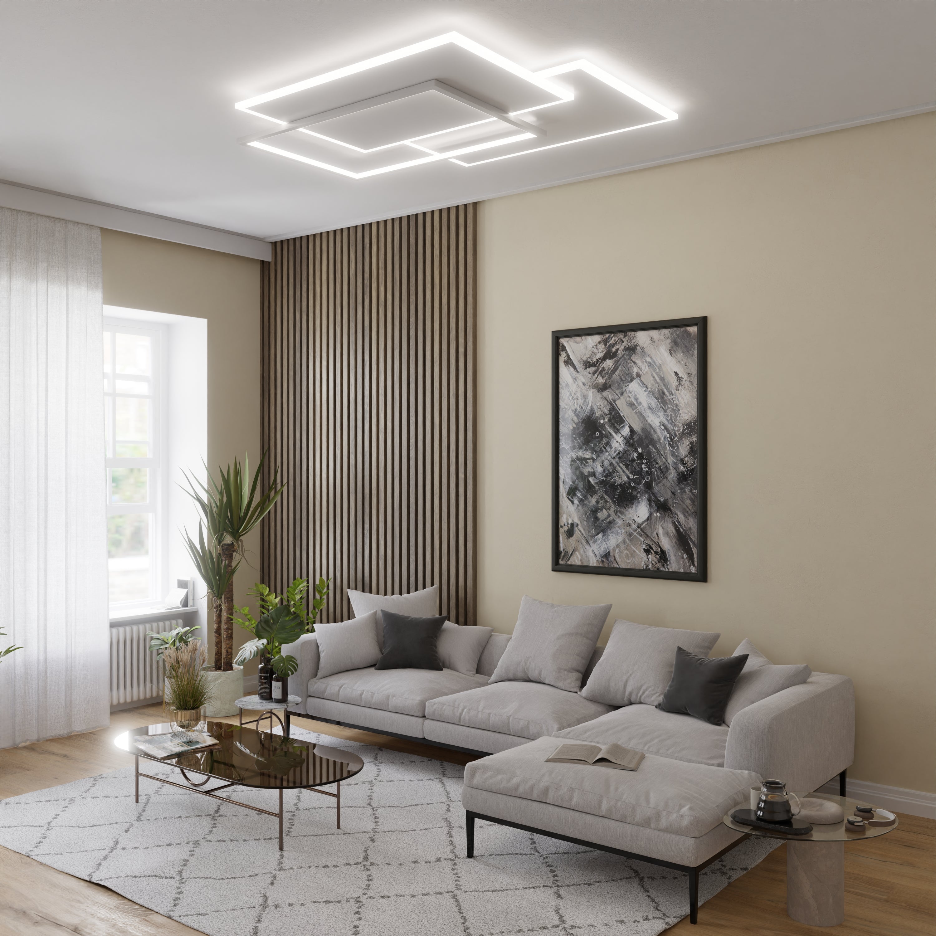 Unsere LED – Deckenlampe mit eckigen Formen vereint ein modernes rechteckiges Design mit smarter Lichttechnik – für besonders stilvolle Wohnräume mit hohem Komfort. Die LED – Lampe verzaubert Ihr Wohnzimmer oder auch das Esszimmer in einen einzigartigen Raum und ist in den Farben Weiß und Schwarz erhältlich.