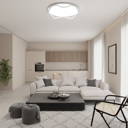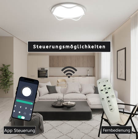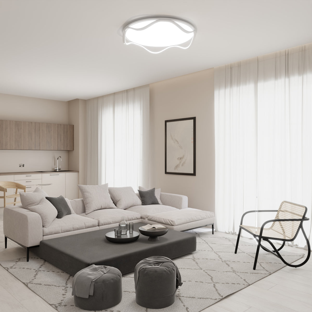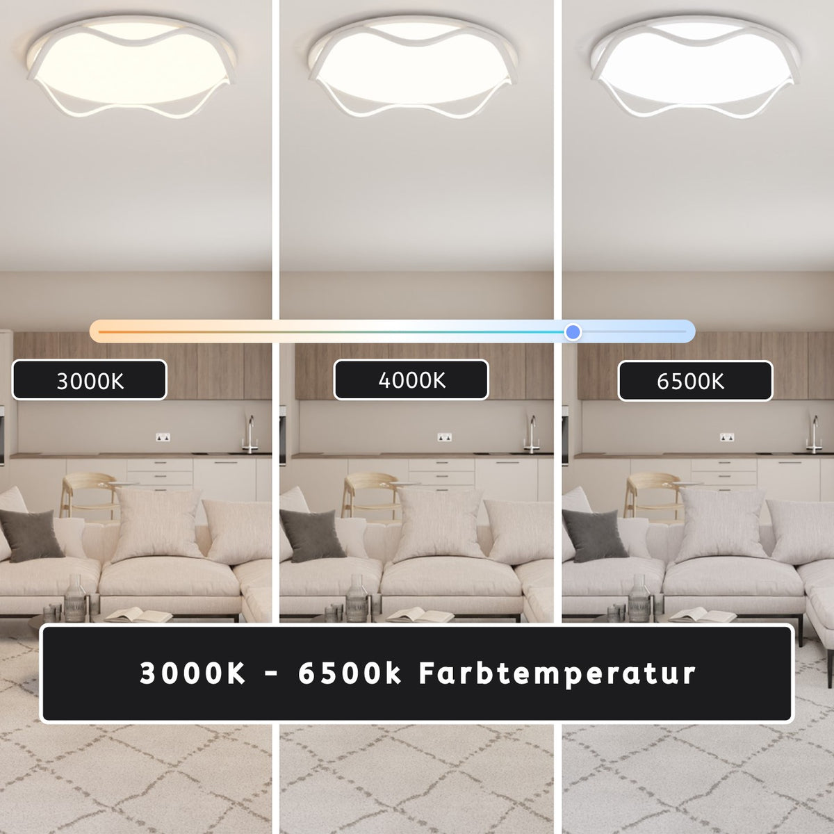 Die besonders elegante LED – Deckenlampe mit Wellenform erhellt Ihr Wohnzimmer oder Schlafzimmer und verleiht Ihren Räumen eine unvergessliche Note. Der wellenförmige Rahmen der LED – Lampe in Weiß bringt eine Leichtigkeit in den Raum und sorgt zugleich für stilvolles, smart ansteuerbares Licht, ganz nach Ihren Wünschen und Bedürfnissen.