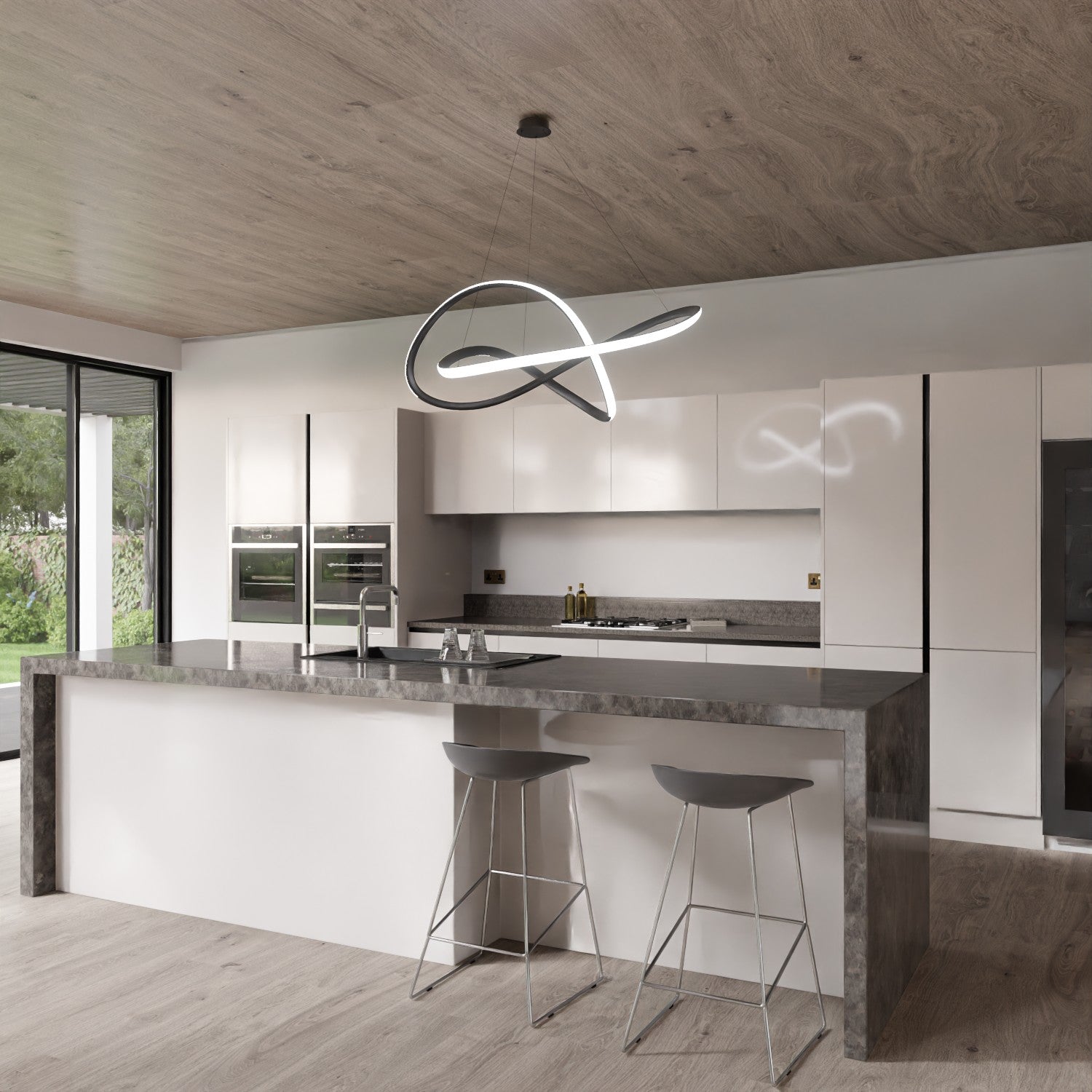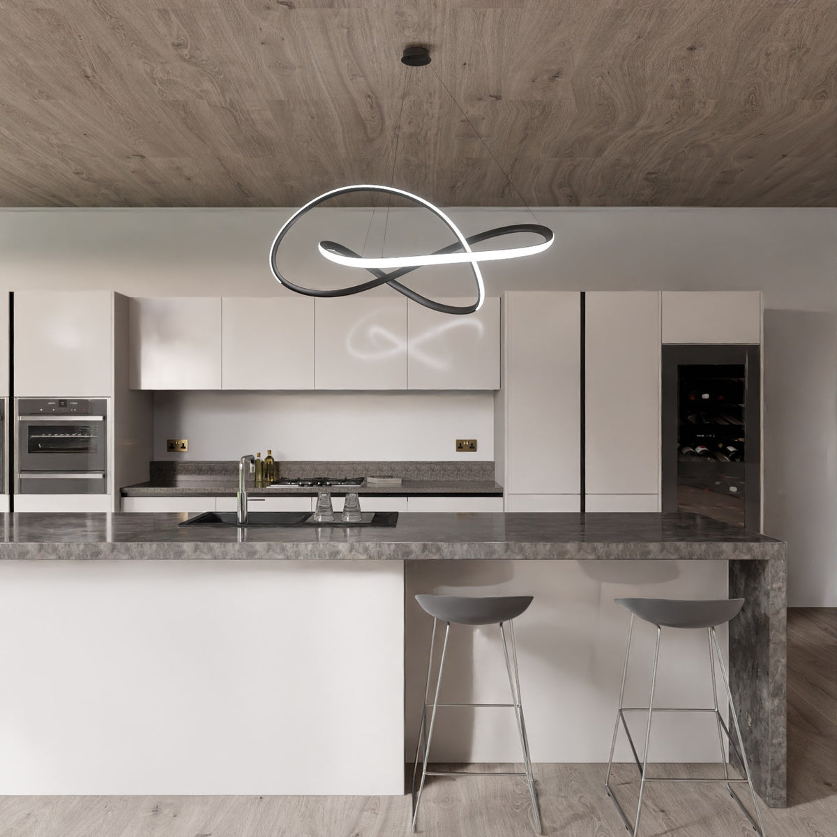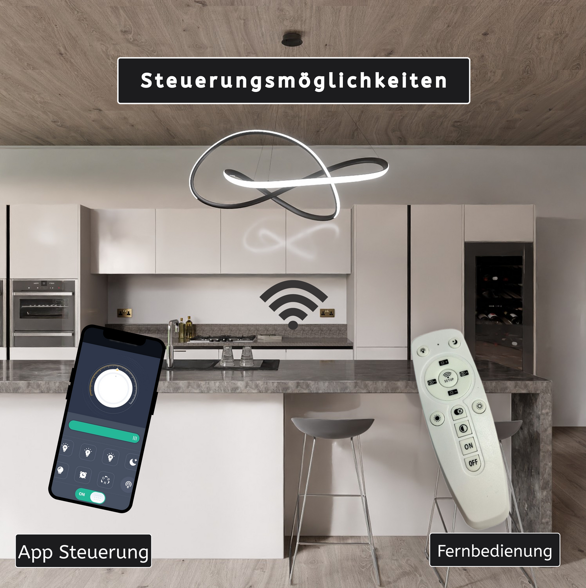 Unsere LED – Hängeleuchte für die Decke vereint elegante Bewegung mit smarter Technik. Die geschwungene Form in edlem Schwarz bringt Dynamik an Ihre Decke und Ihren Wohnräumen. Die LED - Deckenlampe ist dabei nicht nur ein Designstatement, sondern auch funktional durchdacht.